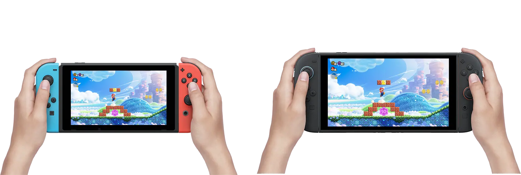 Begge Joy-Con 2-controllere kan bruges til musekontrol på samme tid, hvilket åbner op for nye måder at spille på, fx ved at bruge begge hænder til at styre to musecontrollere på samme tid.