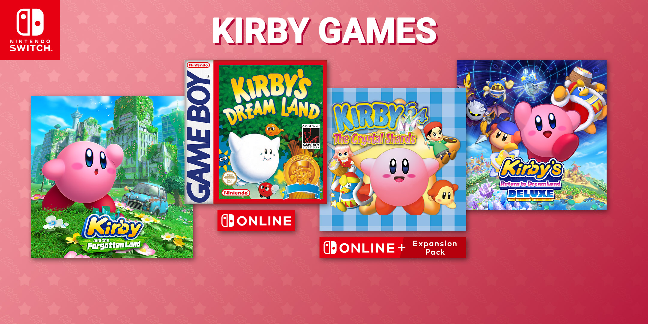 Har du lyst til at genopleve nogle af dine yndlingsspil med Kirby? Eller måske tage på din første rejse gennem Kirbyspillenes historie? Da kan det anbefales at tage et kig på rækken af Kirby-spil, der er tilgængelige med dit medlemskab af Nintendo Switch Online eller Nintendo Switch Online + Expansion Pack.