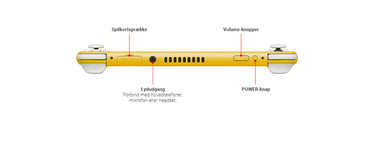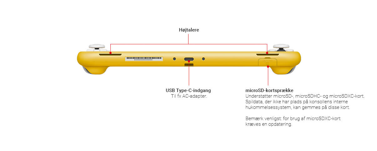 Nintendo Switch Lite har ikke HD Rumble og IR-bevægelseskamera. Ekstra Joy-Con-kontroller (sælges separat) er derfor nødvendige for at spille spil, som benytter sig af disse funktioner.